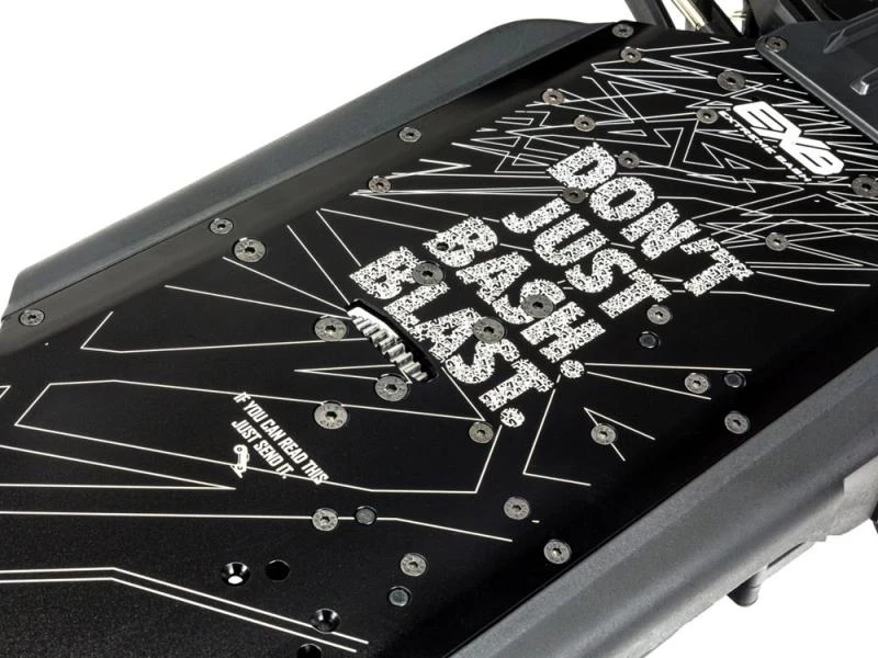 “Designed Fast, Designed Tough” may be an understatement when describing the KRATON® Extreme Bash Roller Speed Monster Truck. Made of strong anodized 7075 T6 aluminum, the laser-etched chassis plate gains further rigidity from the use of front and rear aluminum chassis braces. Strong composite chassis side pods and a center body support and brace provide more rugged resilience.