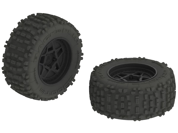 These high-quality dBoots BACK-FLIP tires, mounted on ARRMA wheels, are direct replacements for your kit items.