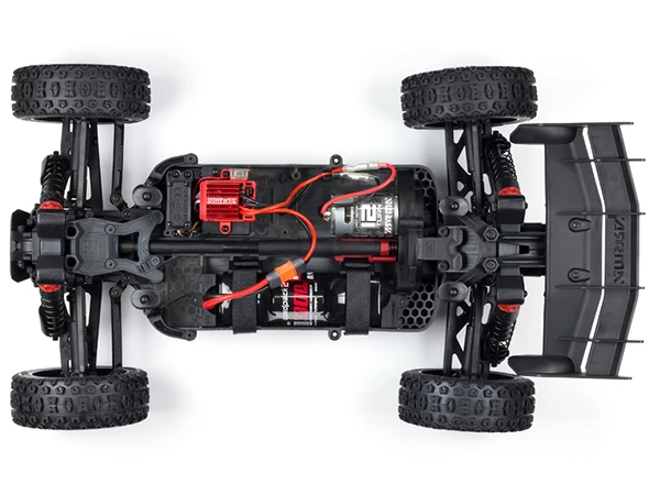 Making your move into 1/8 scale Speed Buggy action has never been easier. Fast, rugged and factory-built, the 2S LiPo-compatible ARRMA® TYPHON™ 4X4 MEGA RTR comes ready out of the box to bash on any terrain. Precision aluminum, tough steel and composite materials come together for an easy-to-maintain, super-durable vehicle design whose high downforce wing and low center of gravity, with wide arms and narrow wheels and tires, improve handling over race tracks, trails, muddy courses, skate parks and more. This version features new equipment that further increases the original Speed Buggy’s already impressive performance and durability.